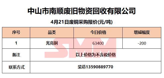 4月21日中山南顺 废铜采购报价