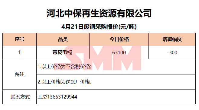 4月21日河北中保 废铜采购报价