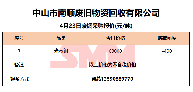 4月23日中山南顺 废铜采购报价