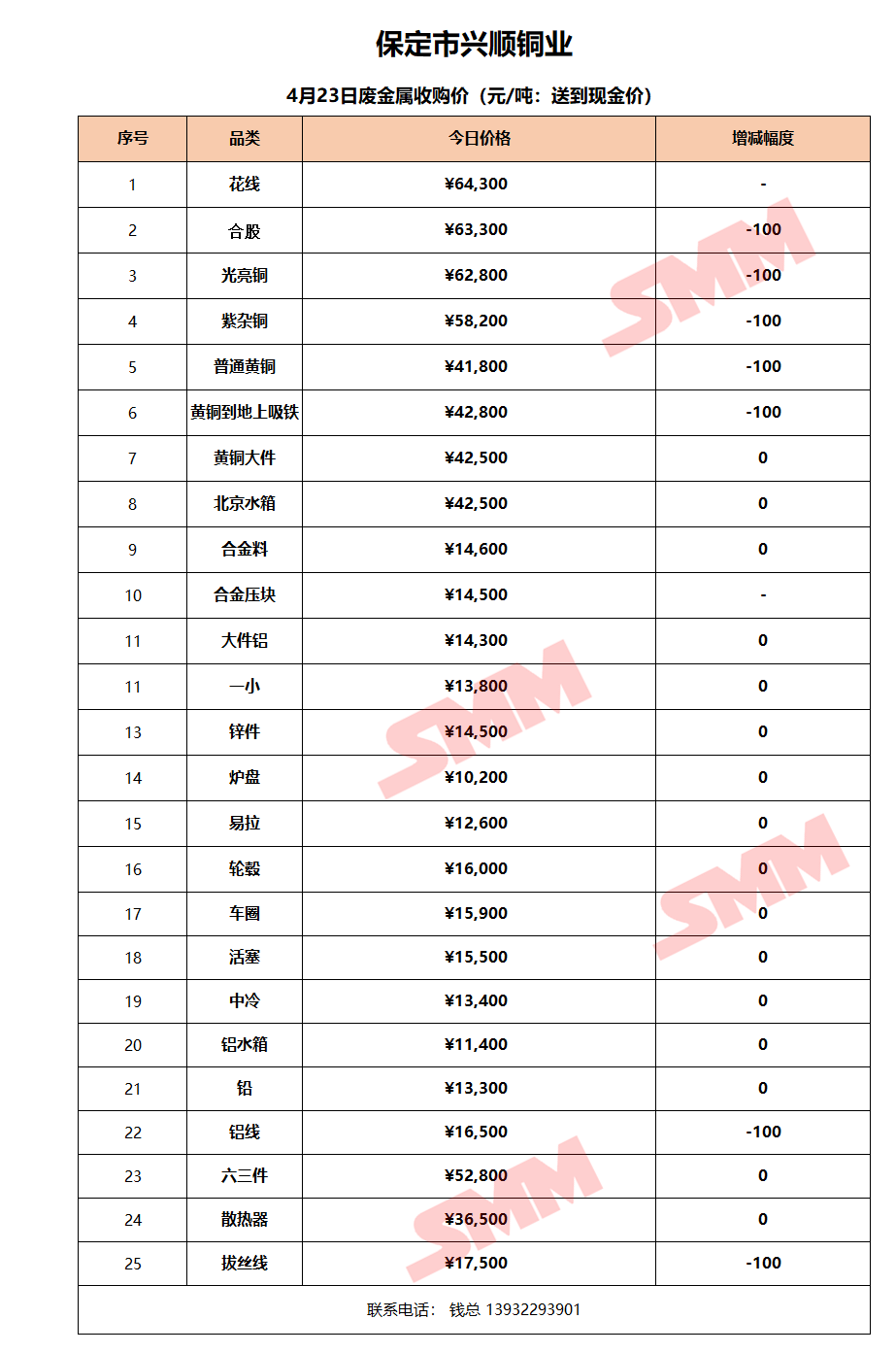 今日保定兴顺铜业,废金属收购报价已更新,有货的朋友欢迎联系我们!