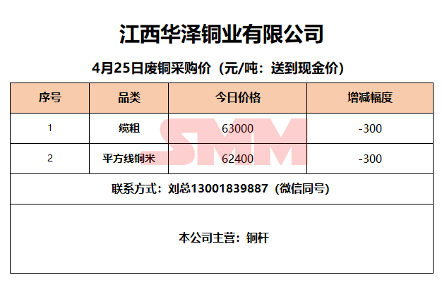 4月25日江西华泽铜业 废铜采购报价