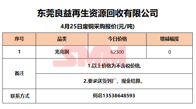 4月25日东莞良益 废铜采购报价