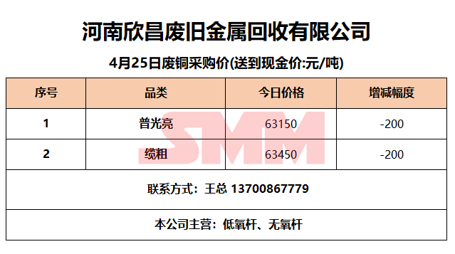 4月25日河南欣昌 废铜采购报价