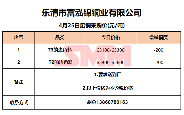 今日乐清富泓锦,废铜采购报价已更新,有货的朋友欢迎联系我们!