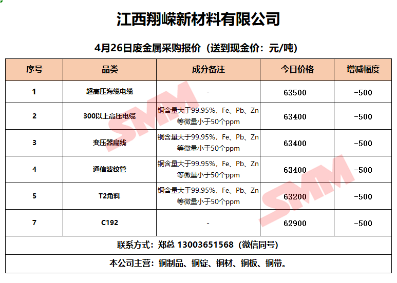 今日江西翔嵘新材料,废铜采购报价已更新,有货的朋友欢迎联系我们!