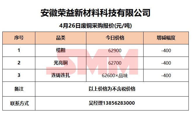 今日安徽荣益新材料,废铜采购报价已更新,有货的朋友欢迎联系我们!
