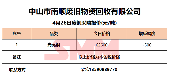 4月26日中山南顺 废铜采购报价