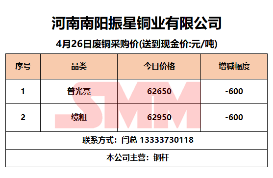 4月26日南阳振星 废铜采购报价