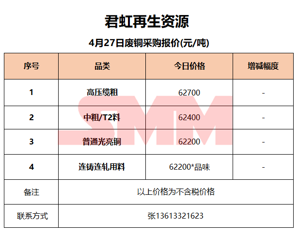 今日君虹再生资源,废铜收购报价已更新,有货的朋友欢迎联系我们!