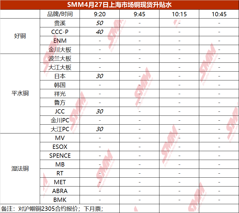4月27日上海市场铜现货升贴水(第一时段)【SMM价格】