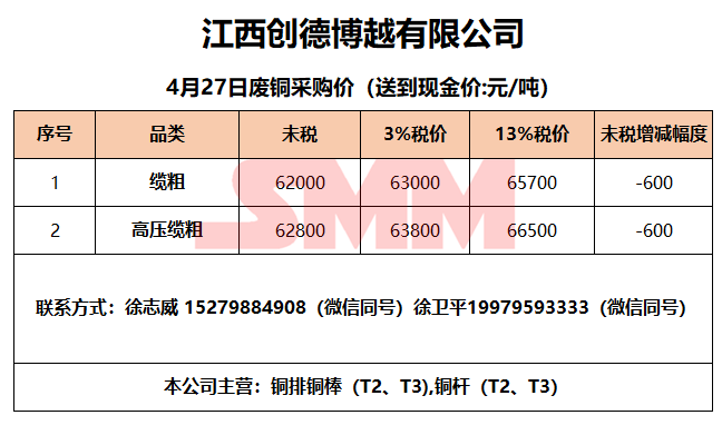 今日江西创德博越,废铜采购报价已更新,有货的朋友欢迎联系我们!