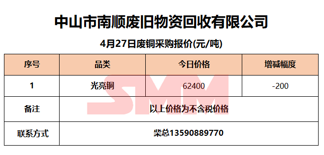 4月27日中山南顺 废铜采购报价