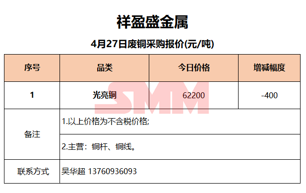 今日广东祥盈盛,废铜采购报价已更新,有货的朋友欢迎联系我们!