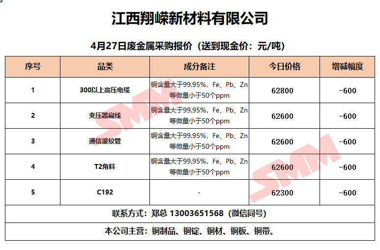 今日江西翔嵘新材料,废铜采购报价已更新,有货的朋友欢迎联系我们!