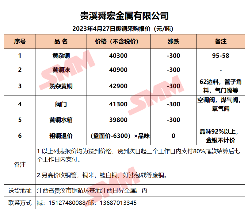 今日贵溪舜宏金属有限公司 ,废铜采购报价已更新,有货的朋友欢迎联系我们!