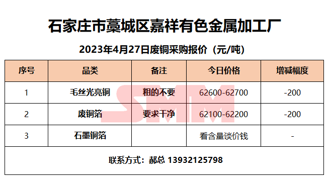 今日嘉祥有色金属,废铜采购报价已更新,有货的朋友欢迎联系我们!