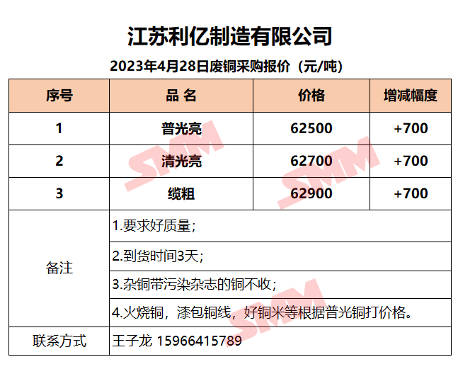 今日江苏利亿制造有限公司 ,废铜采购报价已更新,有货的朋友欢迎联系我们!