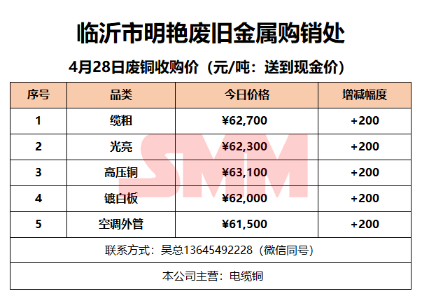 今日临沂明艳废旧金属,废铜收购报价已更新,有货的朋友欢迎联系我们!