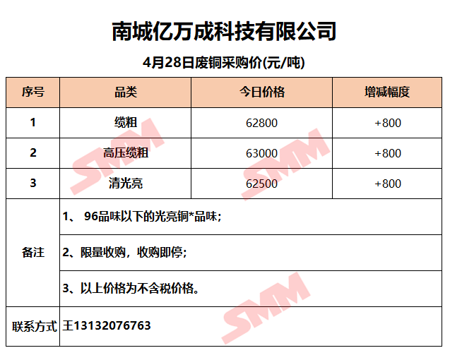 4月28日江西亿万成 废铜采购报价