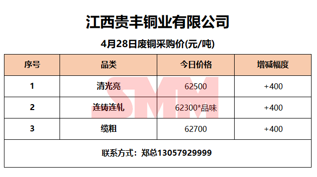 4月28日江西贵丰 废铜采购报价