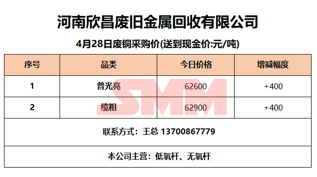 今日河南新昌铜业(欣昌),废铜采购报价已更新,有货的朋友欢迎联系我们!