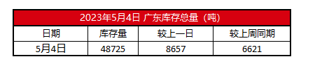 2023年5月4日广东电解铜库存【SMM数据】