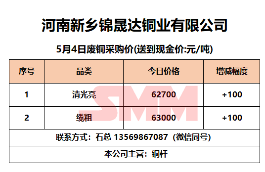 5月4日河南锦晟达 废铜采购报价