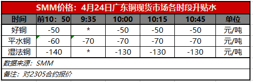 4月24日广东铜现货市场各时段升贴水(第四时段10:45)【SMM价格】