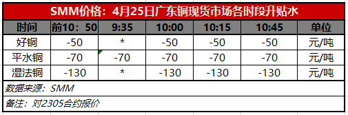 4月25日广东铜现货市场各时段升贴水(第四时段10:45)【SMM价格】