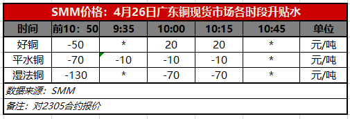 4月26日广东铜现货市场各时段升贴水(第三时段10:15)【SMM价格】