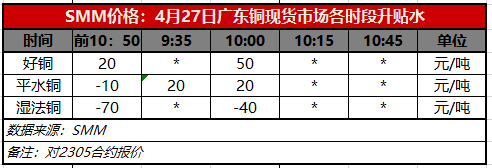 4月27日广东铜现货市场各时段升贴水(第二时段10:00)【SMM价格】
