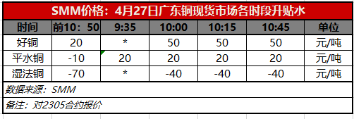 4月27日广东铜现货市场各时段升贴水(第四时段10:45)【SMM价格】