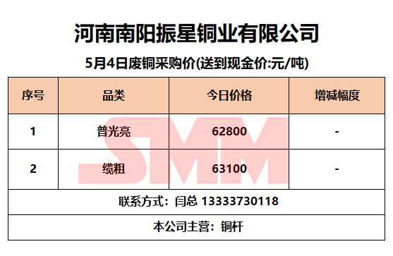 今日南阳振星,废铜采购报价已更新,有货的朋友欢迎联系我们!