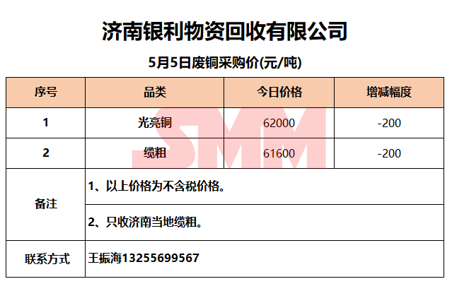 5月5日济南银利 废铜采购报价