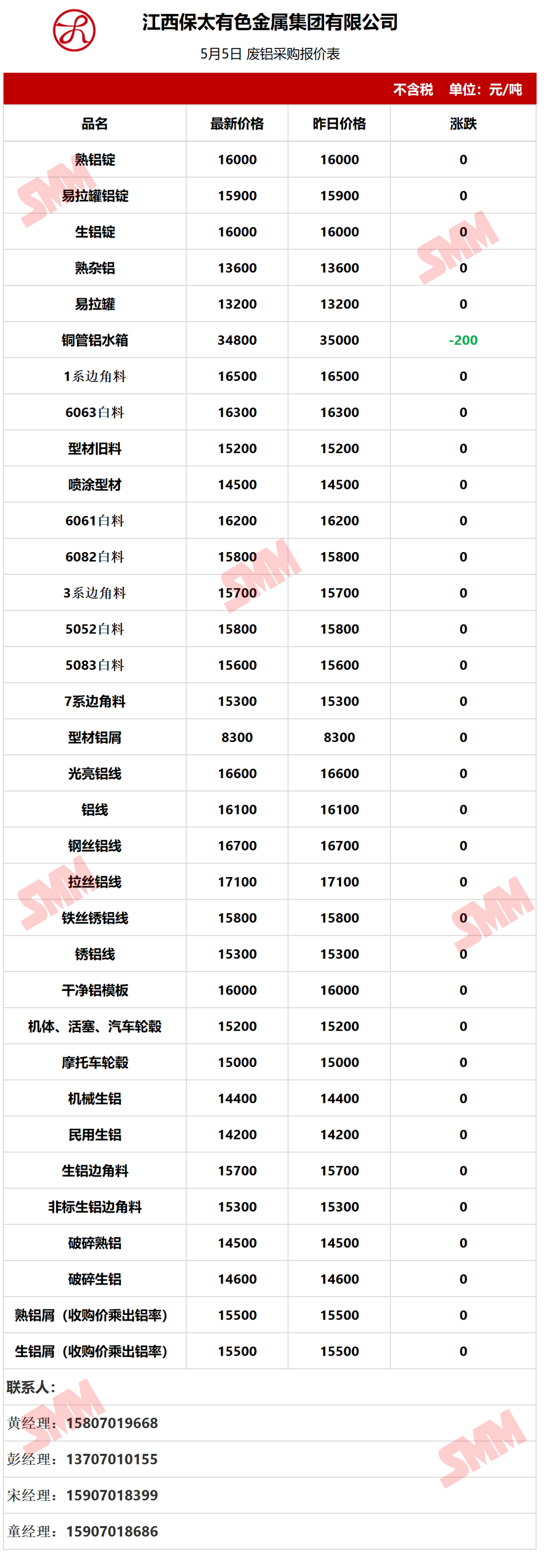 今日江西保太有色金属集团 废铝采购报价已更新,有货的朋友欢迎联系我们!