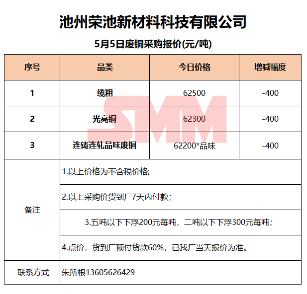 今日池州荣池 废铜采购报价已更新,有货的朋友欢迎联系我们!