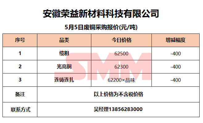 今日安徽荣益新材料,废铜采购报价已更新,有货的朋友欢迎联系我们!