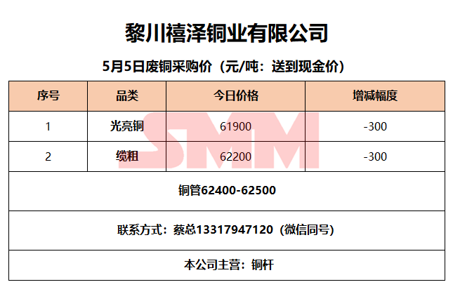5月5日黎川禧泽铜业 废铜采购报价