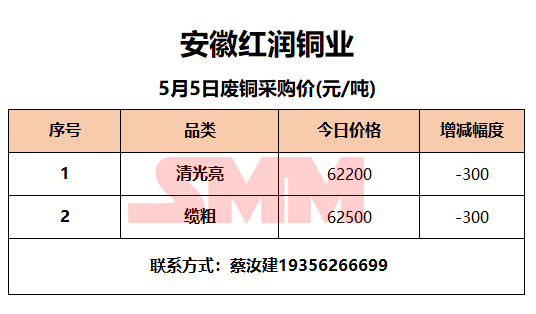 今日安徽红润铜业,废铜采购报价已更新,有货的朋友欢迎联系我们!
