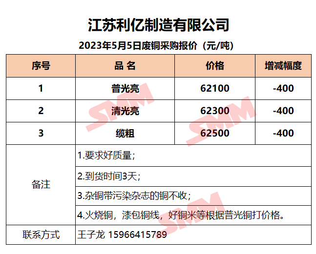 今日江苏利亿制造有限公司 ,废铜采购报价已更新,有货的朋友欢迎联系我们!