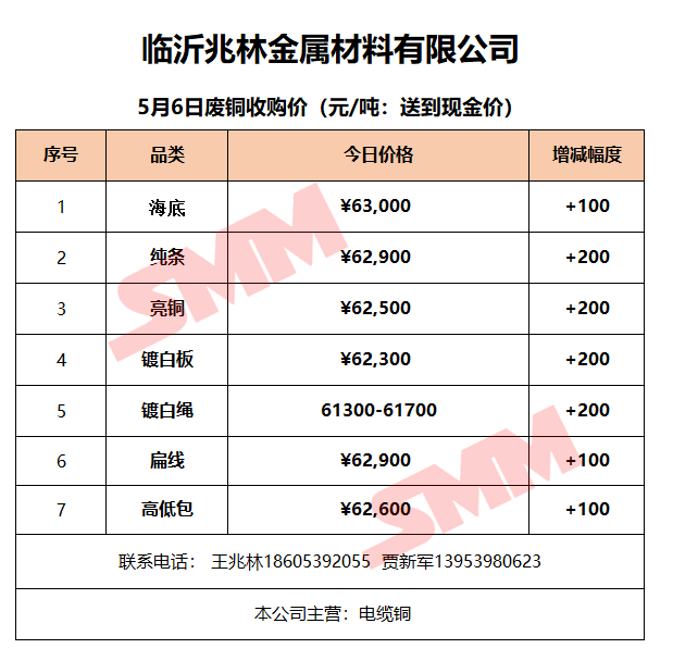 5月6日临沂兆林金属 废铜收购报价