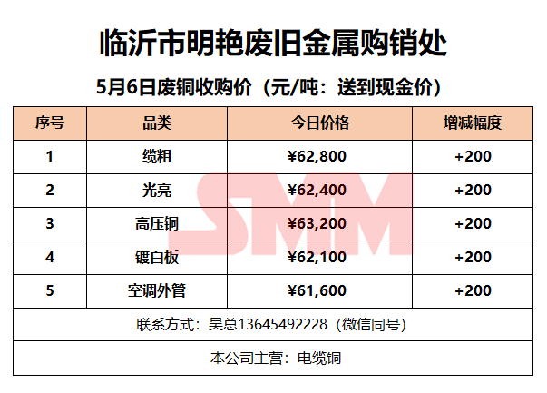5月6日临沂明艳废旧金属 废铜收购报价