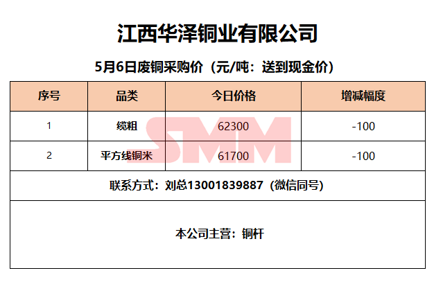 5月6日江西华泽铜业 废铜采购报价