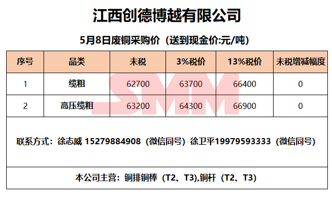 5月8日江西创德博越 废铜采购报价