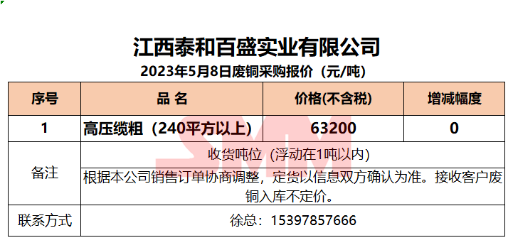 今日江西泰和百盛实业 ,废铜采购报价已更新,有货的朋友欢迎联系我们!