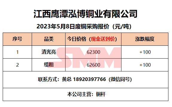 5月8日江西鹰潭泓博铜业 废铜采购报价