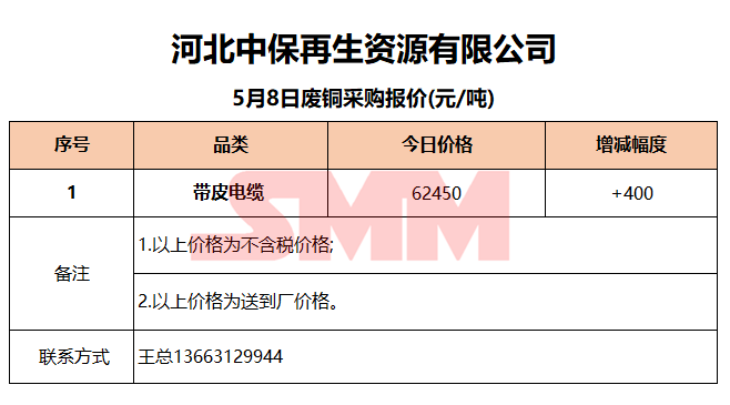 5月8日河北中保 废铜采购报价