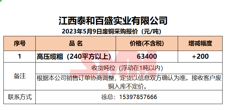今日江西泰和百盛实业 ,废铜采购报价已更新,有货的朋友欢迎联系我们!