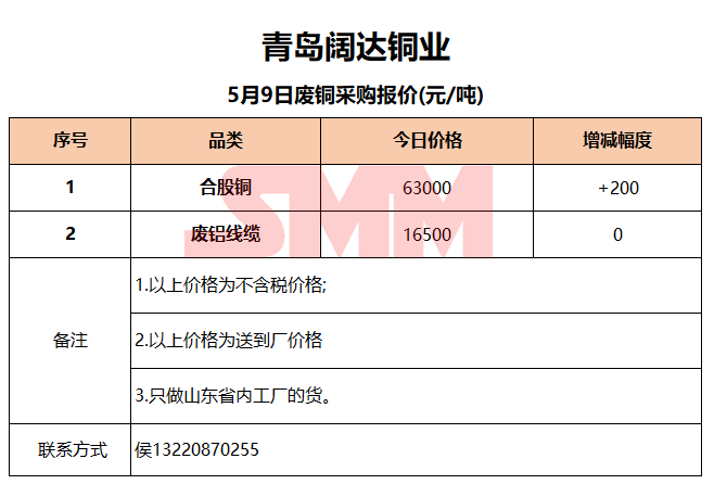 今日青岛阔达铜业 ,废铜采购报价已更新,有货的朋友欢迎联系我们!