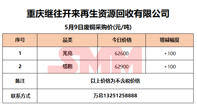 5月9日重庆继往开来 废铜采购报价
